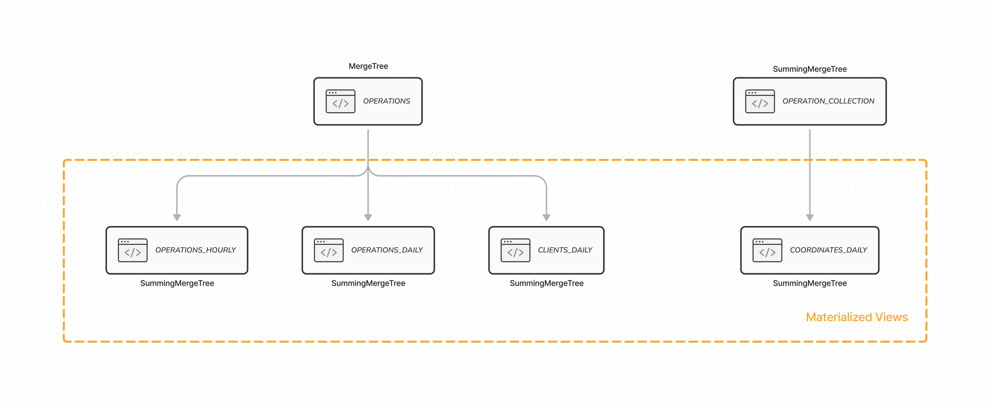 To understand the things we do with ClickHouse, you first need to understand the core of it, the MergeTree family and Materialized Views. This is what ClickHouse documentation says about the MergeTree family.